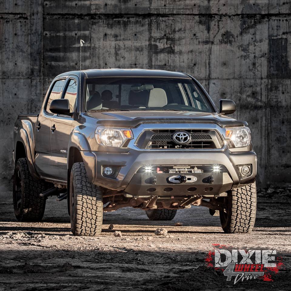 From the guys at Dixie 4 Wheel Drive: We just finished installing this Winch, US Off Road Bumper, and LED pods into the factory cover on this 2015 Toyota USA Tacoma with a Factor55 Pro Link. Nice clean look.