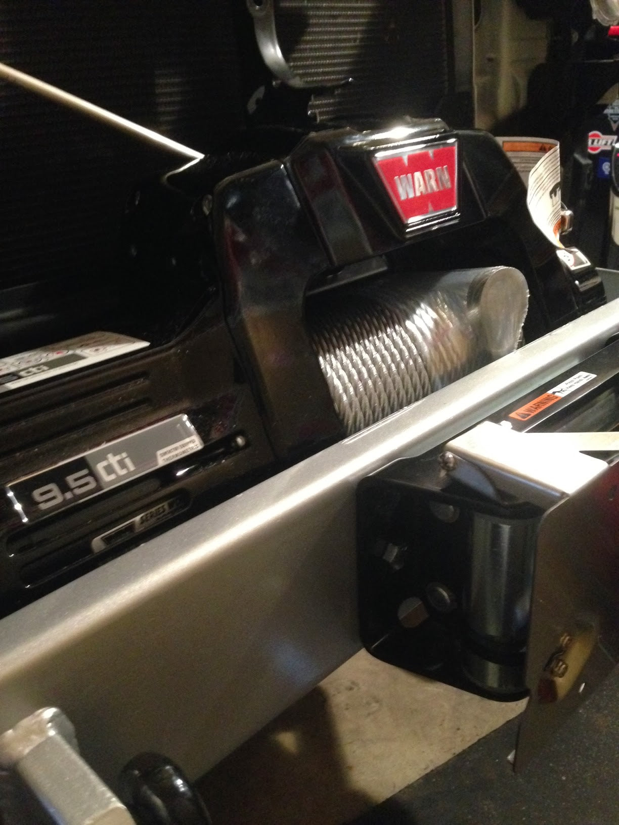 From Maria in Maryland. Warn 9500 CTi fits perfectly. Painted silver to match stock FJ plastic and a flip up license plate for a very clean installation. Nicely done!
