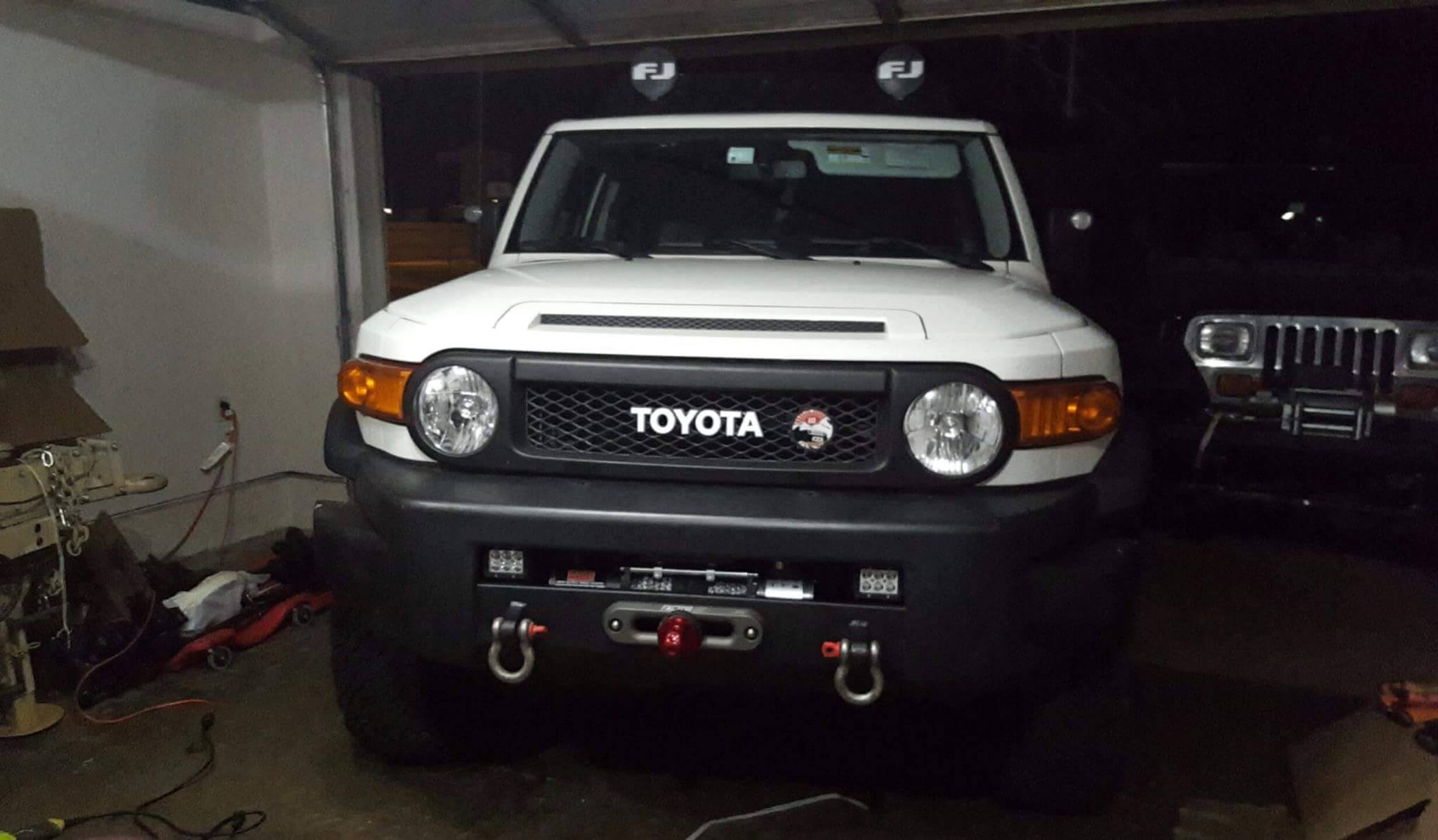 Michael from Oklahoma sends us a couple of photos of his FJ Cruiser with our winch mount, Engo 10k winch combo. Michael from Oklahoma sends us a couple of photos of his FJ Cruiser with our winch mount, Engo 10k winch combo. Very nice!