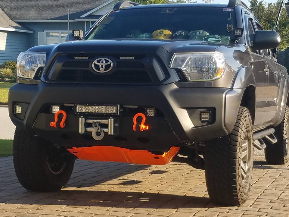 These are a few photos from a customer of our new light mount with the Engo 12″ LED mounted on his Tacoma with our winch bumper. We have them for roller fairlead (shown) or hawse applications.